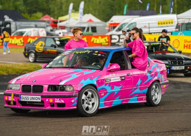 FOTO: ātruma un degušas gumijas fani pulcējas un Drifta festivālu Daugavpilī
