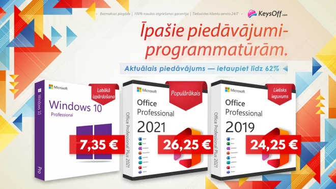 Tāpēc ir pienācis laiks iegūt jaunāko Office versiju, jo Keysoff īsteno īpašu programmatūras akciju! Ņemiet vērā, ka Mac lietotāji iegūs tikai pamata komplektu Home and Business, savukārt Windows lietotāji iegūs Professional komplektu, kurā ietilpst arī Office Publisher un Office Access. Office 2021 Pro cena ir 26,25 €, savukārt Microsoft cena pārsniedza 400 $. Keysoff piedāvā 90% atlaidi! Office 2021 Home and Business arī var apmierināt jūsu budžetu par 28,99 €. Plašāku informāciju par jaunāko Windows var atrast tālāk esošajā aprakstā. Nepalaidiet garām lielo programmatūras izpārdošanu.