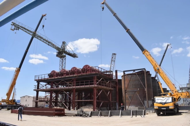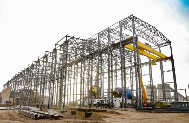 Paātrinātā tempā tiek veikti būvmontāžas darbi projektā “Esošās ēkas Dienvidbukinai ģeotehnoloģiskās raktuves Nr. 2 rekonstrukcija 200 litru metāla mucu ražošanai”.