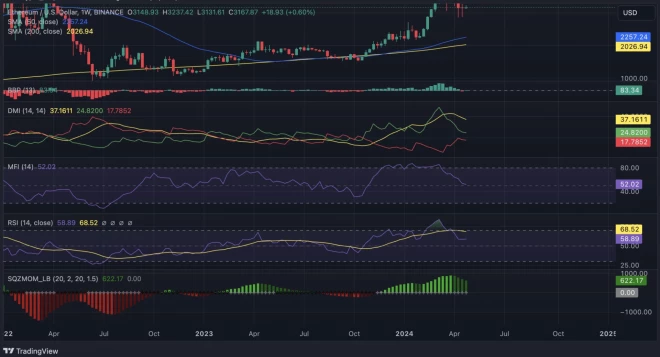 Rakstīšanas brīdī ETH relatīvā spēka indekss (RSI) un naudas plūsmas indekss (MFI) bija attiecīgi 58,77 un 52,01.