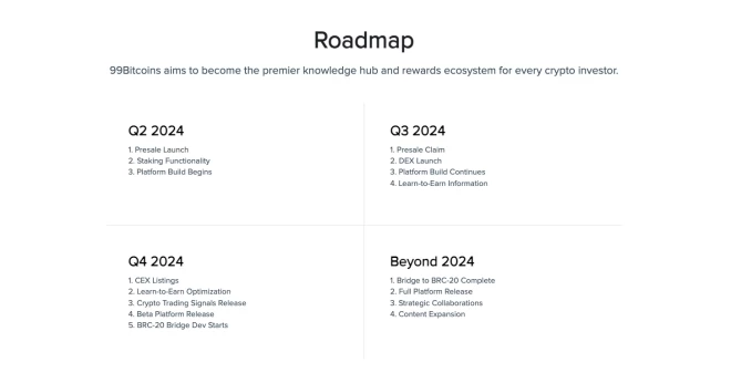 Šī iemesla dēļ 99Bitcoins ir gatavs 2024. gadā nodrošināt nevainojamu izaugsmi izglītības vertikālē, un ar pašreizējo iepriekšpārdošanas tirgus maksimālo apjomu 1,1 miljonu apmērā, atkārtojot EDU un TOKEN panākumus, šodienas iepriekšpārdošanas investori varētu gūt vairāk nekā 100 reižu peļņu.