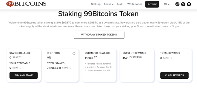 Atklājiet $99BTC - īpaši augsts +1140% APY un vairāk nekā 100 miljoni dolāru tirgus kapitalizācijas potenciāls