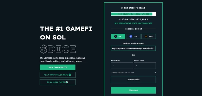 $DICE žetons ienes azartspēles DeFi psaulē unikālā veidā. Mega Dice Token nav tikai nejaušs jauns žetons, kas mēģina izmantot GemFi ažiotāžu.