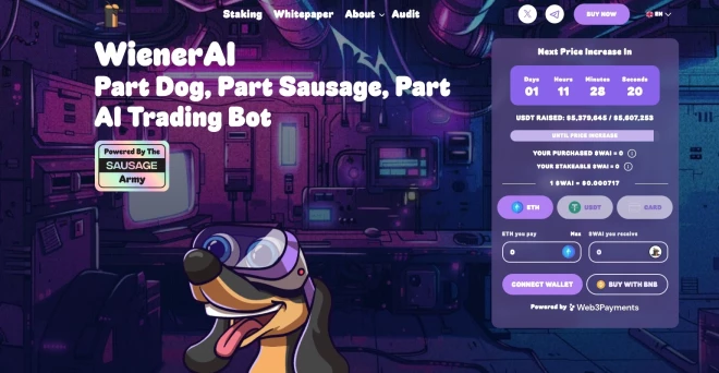 WienerAi ir vēl viena mēmu kritpovalūta, kurā investēt. Tā apvieno mēmu kultūru ar MI tehnoloģiju.