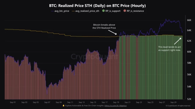 Bitcoin [BTC] pēdējā laikā ir parādījis stabilizēšanās pazīmes virs 64 000 ASV dolāru atzīmes, lai gan sākotnēji 30. septembra agrākajās stundās tā vērtība pieauga līdz 66 000 ASV dolāriem. Kopš tā laika ir notikusi neliela korekcija, samazinot vērtību līdz 64 633 ASV dolāriem, kas ir neliels 1,4% kritums no nesen sasniegtā maksimuma.
