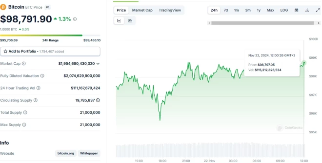 Bitcoin ($BTC) ceļš uz 100 000 ASV dolāriem izskatās skaidrāks nekā jebkad agrāk, jo raksta publicēšanas laikā tā vērtība svārstās ap 99 000 ASV dolāriem.