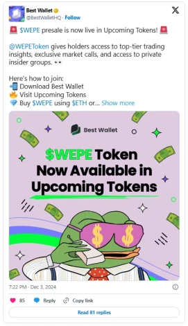 Profesionāļu padoms: ja izmantosiet Best Wallet, jums būs tūlītēja piekļuve visai nepieciešamajai informācijai par Wall Street Pepe un jaunāko informāciju par projektu. Turklāt jūsu $WEPE žetoni parādīsies jūsu makā pirms oficiālā pieprasīšanas datuma paziņošanas.