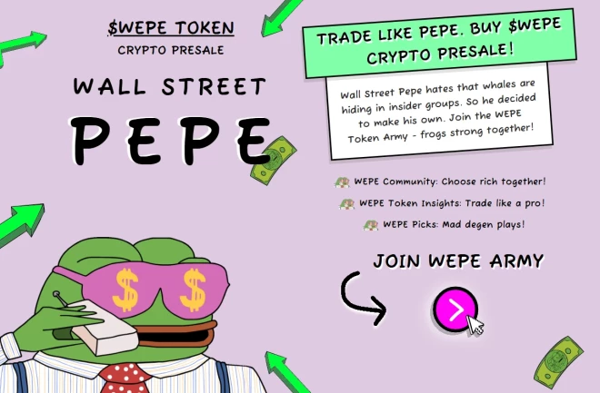 Papildus tiešajai tirgus informācijai WEPE piedāvā arī balvas par ieguldījumiem ar dinamiskām APY likmēm, ļaujot turētājiem pelnīt pasīvi. WEPE komanda reklamē šo tokenu kā nākamo lielo Pepe tematikas projektu, jo īpaši tad, kad Pepe cena strauji pieaug, un pat tad, kad tā krītas, apgalvojot, ka Pepe vaļi pāriet uz WEPE.