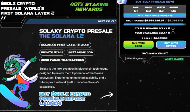 Solaxy izceļas kā pirmais Solana 2. līmeņa risinājums, kura mērķis ir novērst tādas izplatītas Solana problēmas kā tīkla pārslodze un neveiksmīgi darījumi, vienlaikus palielinot ātrumu un mērogojamību.