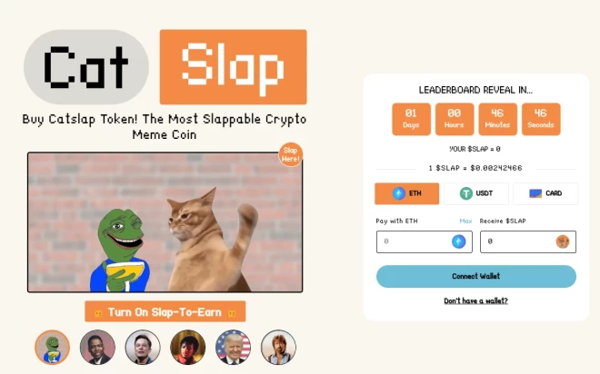 2025. gada janvāra “top kriptovalūtu” diskusiju centrā ir CatSlap - mēmu monēta, kas strauji guvusi popularitāti. Piektdien, 2025. gada 10. janvārī, noslēdzās CatSlap Slap-to-Earn “Slapdrop” pasākums, un ar lielu nepacietību otrdien, 14. janvārī, tiek gaidīts 100 000 USDT dolāru līderu atklāšanas turnīrs. Katrs no 10 labākajiem “slapperiem” saņems 10 000 USDT, kas tiks sadalīti tiešā ''airdrop'' veidā.