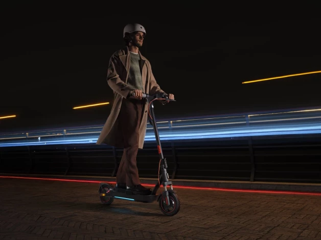 Skrejritenim “Xiaomi Electric Scooter 5 Max” ir vēl divi stilīgi papildu lukturi, kas samontēti zem stāvēšanas platformas, visā tās garumā. Dienā tie nav redzami, bet naktī spīd iespaidīgi, tāpēc, ja vēlaties, lietotnē varat iestatīt, lai “Xiaomi Electric Scooter 5 Max” platformas apakšpuse būtu apgaismota, kā arī, lai ceļa segums tiktu apgaismots pievilcīgā elektriskā krāsā.