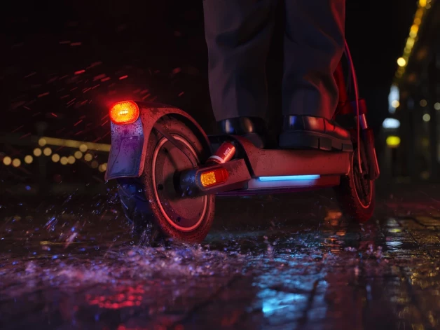 Priekšpusē ir jaudīgs LED lukturis, aizmugurē – sarkans lukturis, kas ieslēdzas kopā ar priekšējo lukturi vai mirgo, kad tiek bremzēts; rokturu galos – pagrieziena lukturi; priekšpusē un sānos ir samontēti atstarotāji. Priekšējais LED lukturis izplata spilgtu gaismas plūsmu, labi izgaismo ceļu: braucot naktī, viss ir lieliski redzams. Lietotnē var iestatīt, lai priekšējais lukturis ieslēdzas automātiski brīdī, kad ārā satumst, var arī iestatīt, lai aizmugurējais lukturis vienmēr būtu ieslēgts.