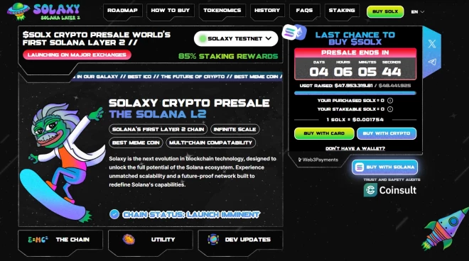 Solaxy (SOLX) apvieno tehnoloģiju, stakingu un mērogojamību - potenciāls kļūt par nākamo lielo kriptovalūtu.