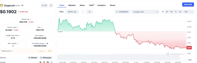 Saskaņā ar jaunākajiem datiem, Dogecoin cena ir samazinājusies par 5,34% pēdējo 24 stundu laikā. Šie kritumi notiek pēc ievērojama cenu kāpuma iepriekšējā nedēļā, taču pēdējās dienās tirgū valda relatīvs klusums.