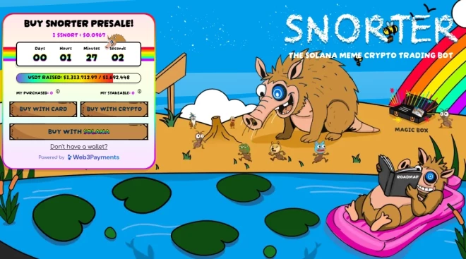 Snorter Bot ($SNORT) ir daudzķēžu mēmu monēta, kas darbojas gan Ethereum, gan Solana platformā un ir izstrādāta, lai pārveidotu mēmu monētu tirdzniecību, apvienojot kultūras pievilcību ar modernām tehnoloģijām. Tokena īpašais Telegram bota interfeiss ļauj lietotājiem veikt apmaiņu kopēt darījumus tieši no čata, tādējādi novēršot nepieciešamību izmantot vairākas platformas.