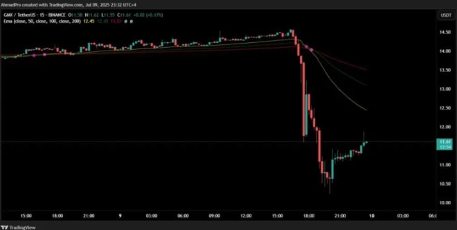 Pēc šīm ziņām GMX monētas vērtība ir samazinājusies par vairāk nekā 20%, no $14 nokrītot zem $11, kas tās tirgus kapitalizāciju samazina zem 111 miljoniem dolāru. GMX birža, kas tika dibināta 2021. gadā un galvenokārt darbojas Arbitrum tīklā, ļauj lietotājiem tirgot tādus aktīvus kā BTC, ETH un AVAX ar sviras efektu (leverage).