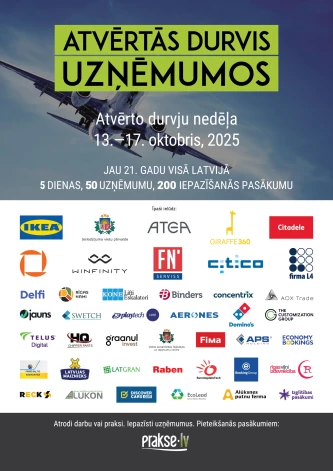 Jau 21. gadu pēc kārtas notiks plaša mēroga pasākums - Uzņēmumu atvērto durvju dienas, kurā darba devēji visā Latvijā aicinās pie sevis jaunos speciālistus, lai iepazīstinātu tos ar darba un prakses iespējām. Uz atvērtajām dienām ikviens var doties no 13. - 17. oktobrim.