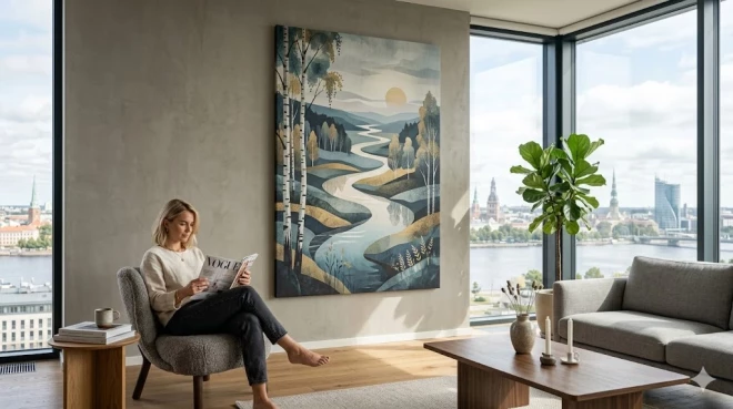 Viena no aktuālākajām interjera tendencēm ir izmantot vienu izteiksmīgu akcentu. Liela izmēra mākslas darbs spēj pilnībā transformēt telpas uztveri.