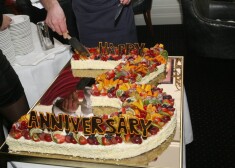 Tieši pusnaktī restorāns par godu savai trīs gadu jubilejai viesiem pasniedza gardu torti.