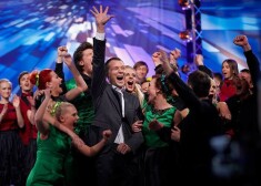 Normunds Zušs un viņa draudzene Mārīte Kokina TV šovā „Dziedošās ģimenes”