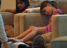Lai uzlabotu mazās dāmas noskaņojumu, mamma Keitija Holmsa aizvadītajā svētdienā aizveda meitu uz skaistumkopšanas salonu, kur Suri baudīja pedikīru, bet pati Keitija vieglu plecu masāžu.