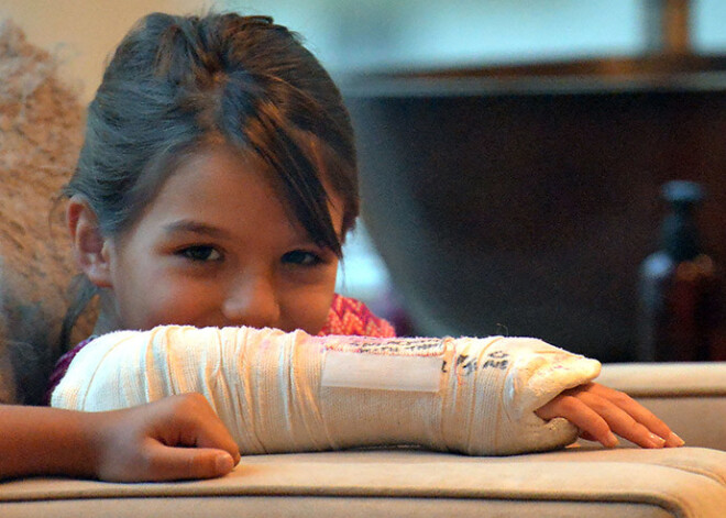 Kā nu gadījies, kā ne, bet aktieru Toma Krūza un Keitijas Holmsas meitiņa Suri (7) lauzusi roku un ir spiesta nēsāt ģipsi.