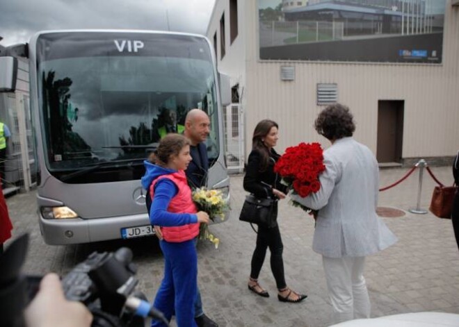 Lidostas „Rīga” VIP zonā ģimeni sagaidīja konkursa „Jaunais vilnis” ģenerāldirektors Aleksandrs Rumjancevs, kā arī Krievijas un Latvijas žurnālistu saimes.