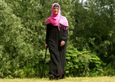 Tā ģērbjas sieviete, kurai ir alerģija pret sauli. FOTO