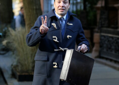 Džimijs Falons iet uz darbu svītrainās zeķītēs. FOTO