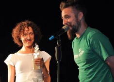 Vienmēr atraktīvā Santa Didžus, saņemot balvu bija nu ļoti samulsusi