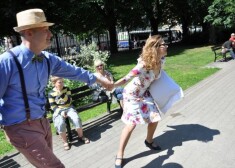Ģirts Ķesteris parkā meitenēm piedāvā tikt pie bērna