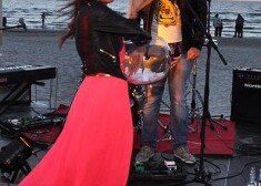Saulainās sestdienas pievakarē jūras krastā pludmales kafejnīcas viesiem bija iespēja vērot arī apakšveļas modes skati, kuru ar īpašiem aplausiem novērtēja arī Lauris Reiniks, savukārt dziedātājs Roberto Meloni pasteidza iemūžināt sevi kopā ar apakšveļā tērptajām meitenēm.