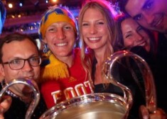 Futbola līdzjutēju vidū Kasjauns.lv sastapa arī deju pasniedzēju Aleksandru Kurusovu, kas uz pasākumu bija ieradusies kopā ar draugu Oskaru Ostrovski. Aleksandra bija sievišķīgi sapucējusies, un arī šoreiz neiztrūkstoša viņas stila sastāvdaļa bija augstpapēžu kurpes un viegli plandoši svārki. Mača laikā Kurusova turējās blakus draugam Oskaram, kurš labu laika brīdi spēlēja galda spēles. Izrādās, ka pārītis nemaz neesot kaislīgi futbola fani, un noskatīties Čempionu līgas finālu abi izdomājuši izklaides pēc.