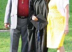 Maģistra diploma saņemšanas ceremoniju apmeklēja arī Evas ģimene un draugi.