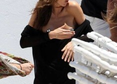 Mirandai Kerai fotosesijas laikā nošļūk tērps, atsedzot kailas krūtis