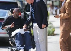 Dolfs Lundgrēns ziedo invalīdam un pozē ar fanu piemiņas fotogrāfijai