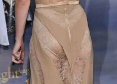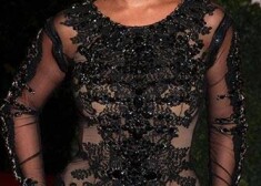 Caurspīdīgs apģērbs atsedz slavenību kailās krūtis