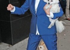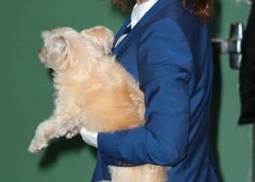 Dodoties uz šova „Good Morning America” ierakstu aktrise bija tērpusies zilā bikškostīmā un koši dzeltenās tenisčībiņās. Uz TV studiju viņa devās kopā ar saviem klēpja sunīšiem Peniju Leinu un Rigbiju Sjū.