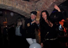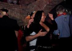 Kluba „Kaļķu vārti” 11 gadu jubilejas ballītē apspriestākais tēls bija kāda efektīga izskata tumšmate. Viņas tērps bija mats matā kā latvju dziedātājai Lienei Brikouskai, kura pirms nedēļas ar dekoltē šokēja Latvijas sabiedrību.