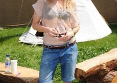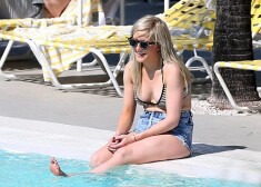 Zvaigzne, kas dziedāja prinča Viljama kāzās, atpūšas pie peldbaseina. FOTO