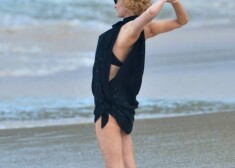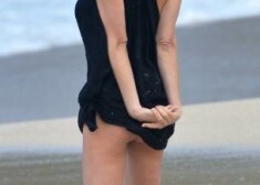 Lai gan modele bija izvēlējusies piesegt nevainojami slaido augumu, virs bikini velkot sarongu, vējš kādā brīdī no mugurpuses atsedza vairāk nekā viņa būtu vēlējusies. Bet tā taču pludmale!