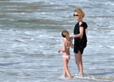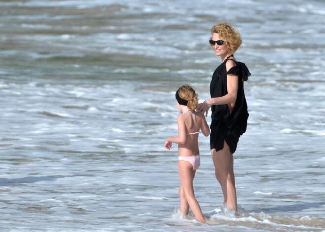 Deviņdesmitos gados populārā supermodele Karena Maldere ar meitu pludmalē