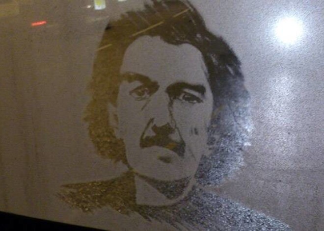 Viņš zīmē filmzvaigznes uz netīriem autobusu logiem. FOTO