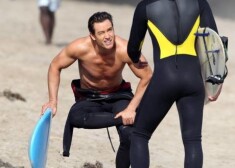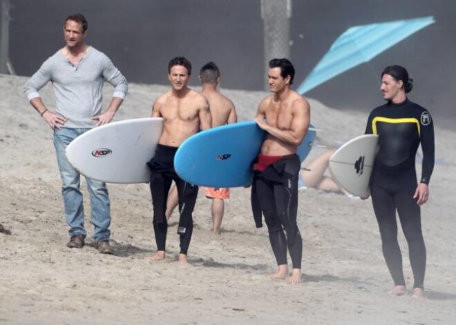 Marks Pols filmēšanas laukumā ļaujas sērfošanas priekiem