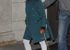 Dziedātāja nebija lietojusi sejas dekoratīvo kosmētiku, acis viņa paslēpa aiz saulesbrillēm, kaut arī diena bija apmākusies un bez saules.