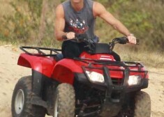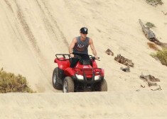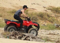 Atpūtai pie baseina Dženifera bija izvēlējusies melnu divdaļīgo bikini, bet ap gurniem apsējusi caurspīdīgu pludmales lakatu. Vēlāk, kad viņas mīļotais devās izbraucienā ar kvadraciklu, aktrise turpināja relaksēties pie baseina smaragdzaļā bikini.