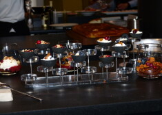 Ar bagātīgu branču – dažādām uzkodām un saldumiem, ko dāsni noskaloja ar dzirkstošu baltvīnu, – restorāns jubilejas ciemiņus priecēja un laba vēlējumus uzklausīja no agra pusdienlaika līdz pat launagam. Viesu vidū Kasjauns.lv lielākoties manīja tā sadarbības partnerus – “Gemoss” īpašnieci Ievu Treiju, „RigaLive” pārstāvjus, sabiedrisko attiecību speciālisti Rūtu Reiniku ar draugu, burātāju Jāni Preisu, vairāku recepšu izdevumu veidotājus, kā arī pastāvīgos restorāna klientus, piemēram, uzņēmēju Māri Gavaru. Sanākušie atzinīgi vērtēja ideju jubileju atzīmēt „laiskā” atmosfērā un sev vēlamā laikā.