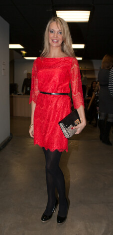 Sarkanas mežģīnes ir ne tikai pamanāmi, bet arī smuki. Kleita labi skatās kopā gan ar glaunajām kurpēm uz augstajiem papēžiem, gan eleganto rokassomiņu.