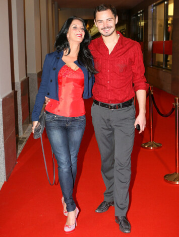 Violai zilais ar sarkano kopā iet labi. Sarkanais izceļas un burtiski sauc: „Skaties mani!” Kurpes ar sarkanām svītriņām un bantītēm gan labāk izskatīties pie kleitas. Rihardam tērps izskatās neslikti, bet jāatceras, ka sarkanie krekli modē parādījās ar hipiju stilu, tātad stilīgāk būtu, ja kājās lRihards vilktu džinsus vai rūtainas bikses.
