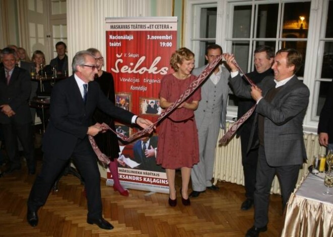 Ar amizantu apsveikumu pirmizrādes banketā igauņu režisoru Elmo Niganenu pārsteidza Nacionālā teātra direktors Ojārs Rubenis.